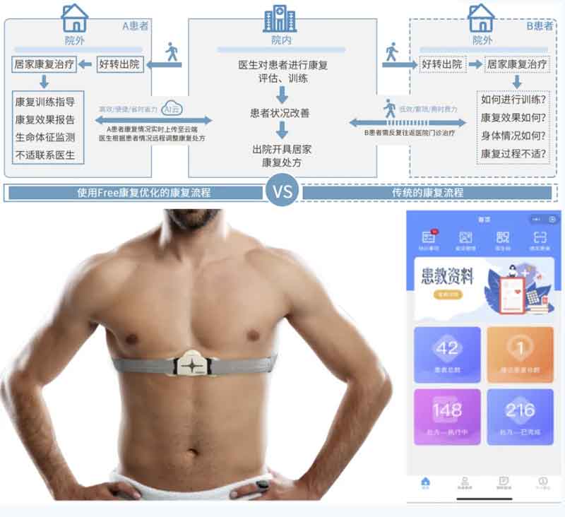 系统是一种专门为院外心肺疾病患者提供居家自我监测和康复管理的数字疗法产品,医生可进行远程处方下达、远程随访、报告查询及医患沟通,患者可进行自我监测评估、康复处方训练、自我预防锻炼、线上沟通咨询等个性化居家康复管理。打通了院内就诊-院外持续康复的壁垒,将临床康复延至院外,提升医生的管理效率,提高患者积极性和安全性。